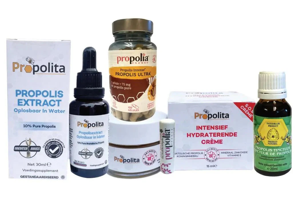 - Propolis (Bekijk ook: propolis tabletten,propolis olie,propolis keelsiroop,kalmerende olie,spijsverteringcapsules)