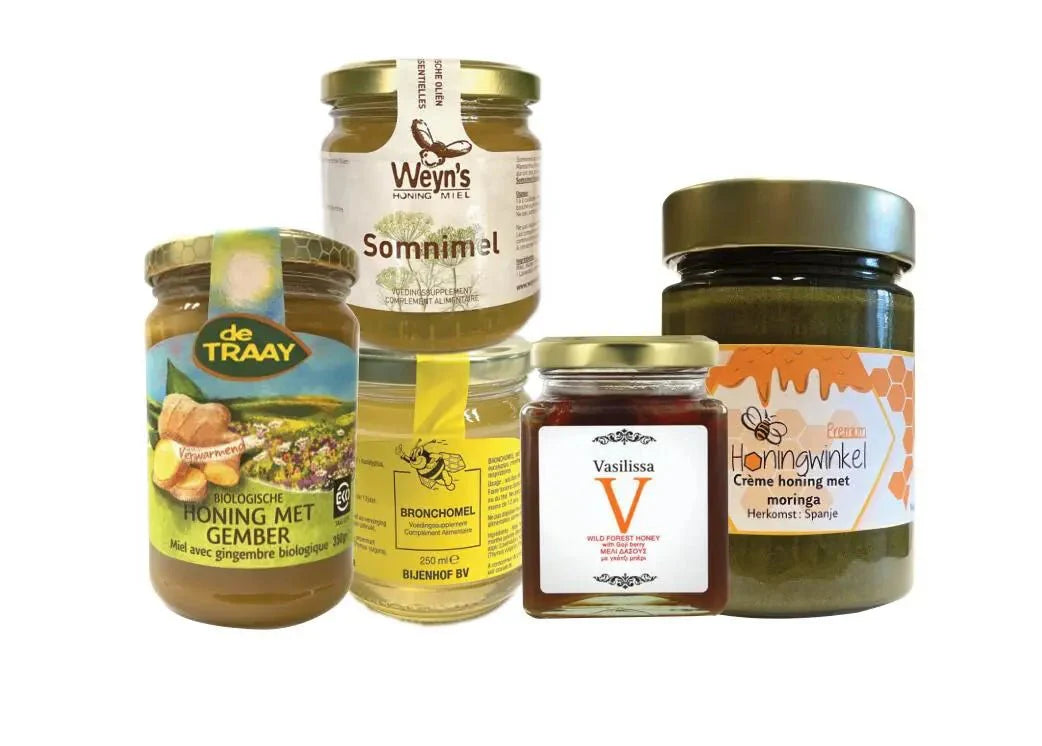 In onze online winkel vind je een uitgebreid assortiment van meer dan 50 soorten honing. Van de verfijnde smaak van Manuka Honing tot de veelzijdigheid van Royal Jelly, wij bieden een scala aan gezondheidsproducten die rechtstreeks afkomstig zijn van onze eigen imkerij.
