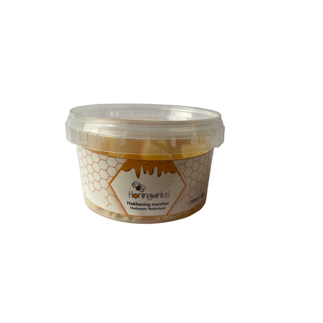 Hakhoning Menthol zijn ambachtelijke, zachte brokjes honing die verrijkt zijn met menthol. Dit product staat bekend om zijn krachtige, frisse aroma en de karakteristieke structuur die langzaam wegsmelt in de mond.